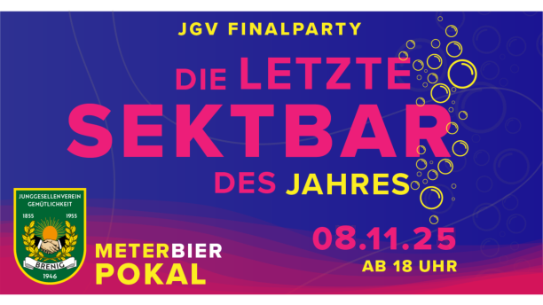 Die JGV FINALPARTY - DIE LETZTE SEKTBAR des Jahres am 08.11.2025 in Brenig!?